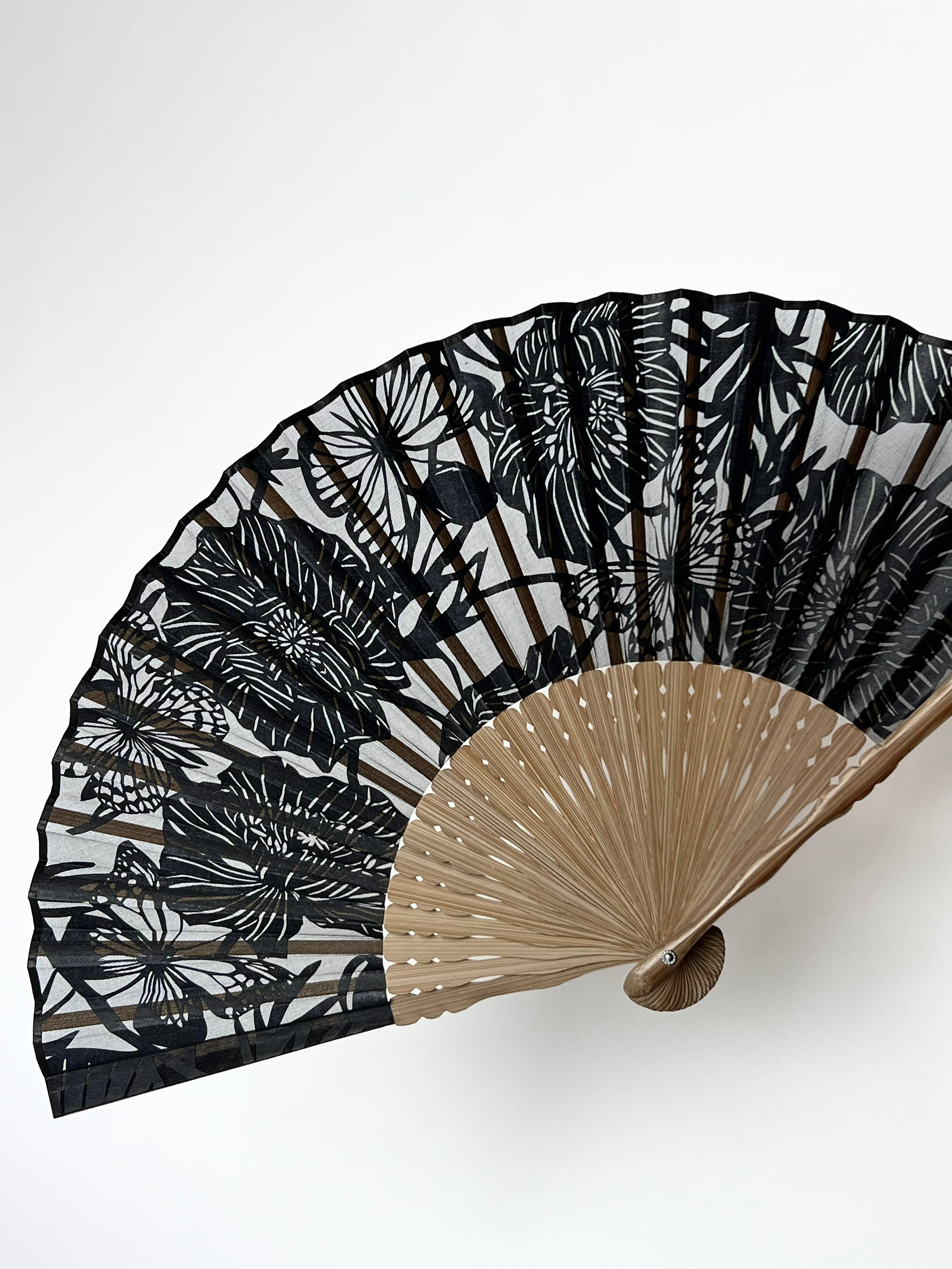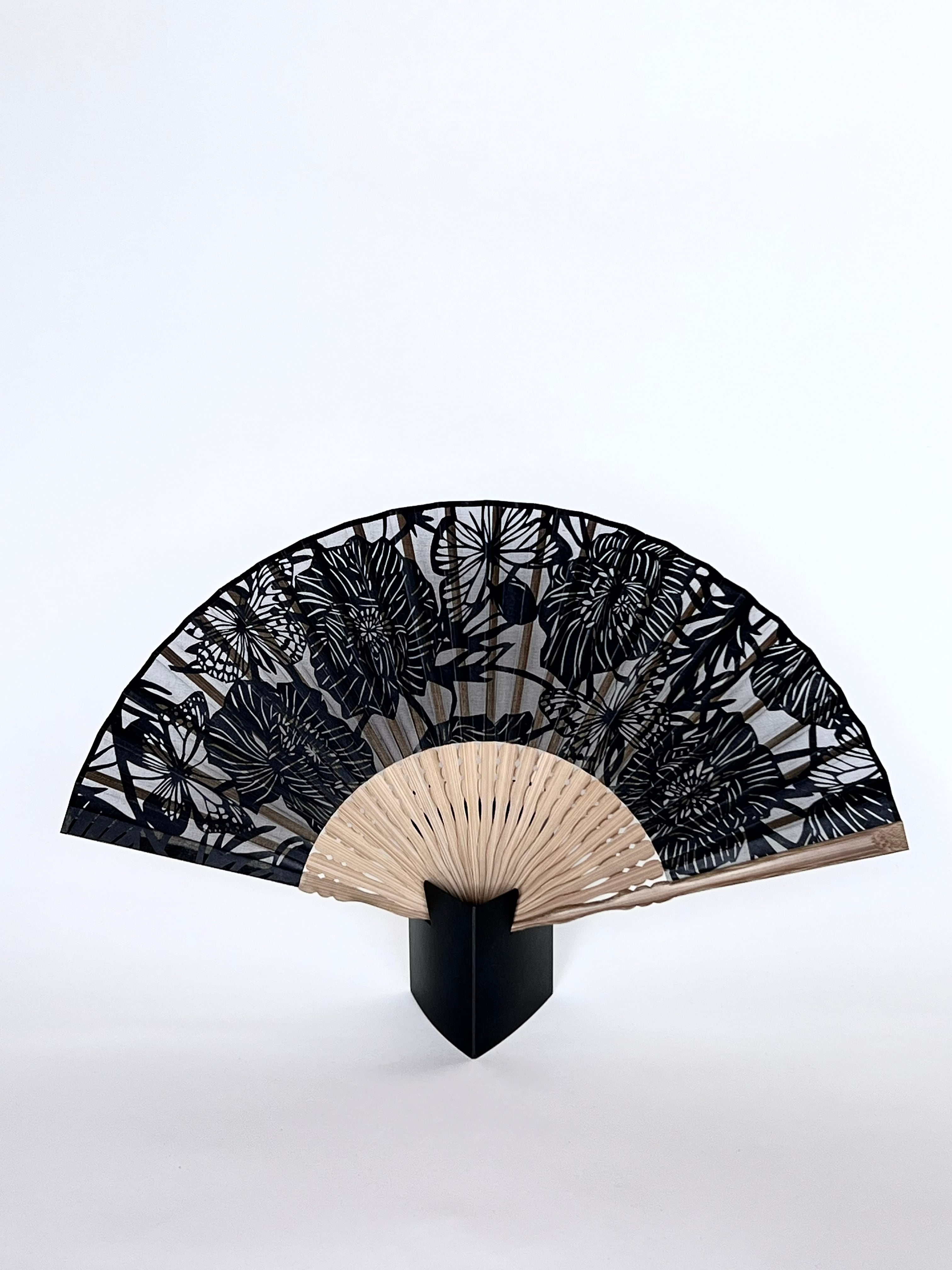 70/25 黒の切り絵扇子 ポピーに蝶