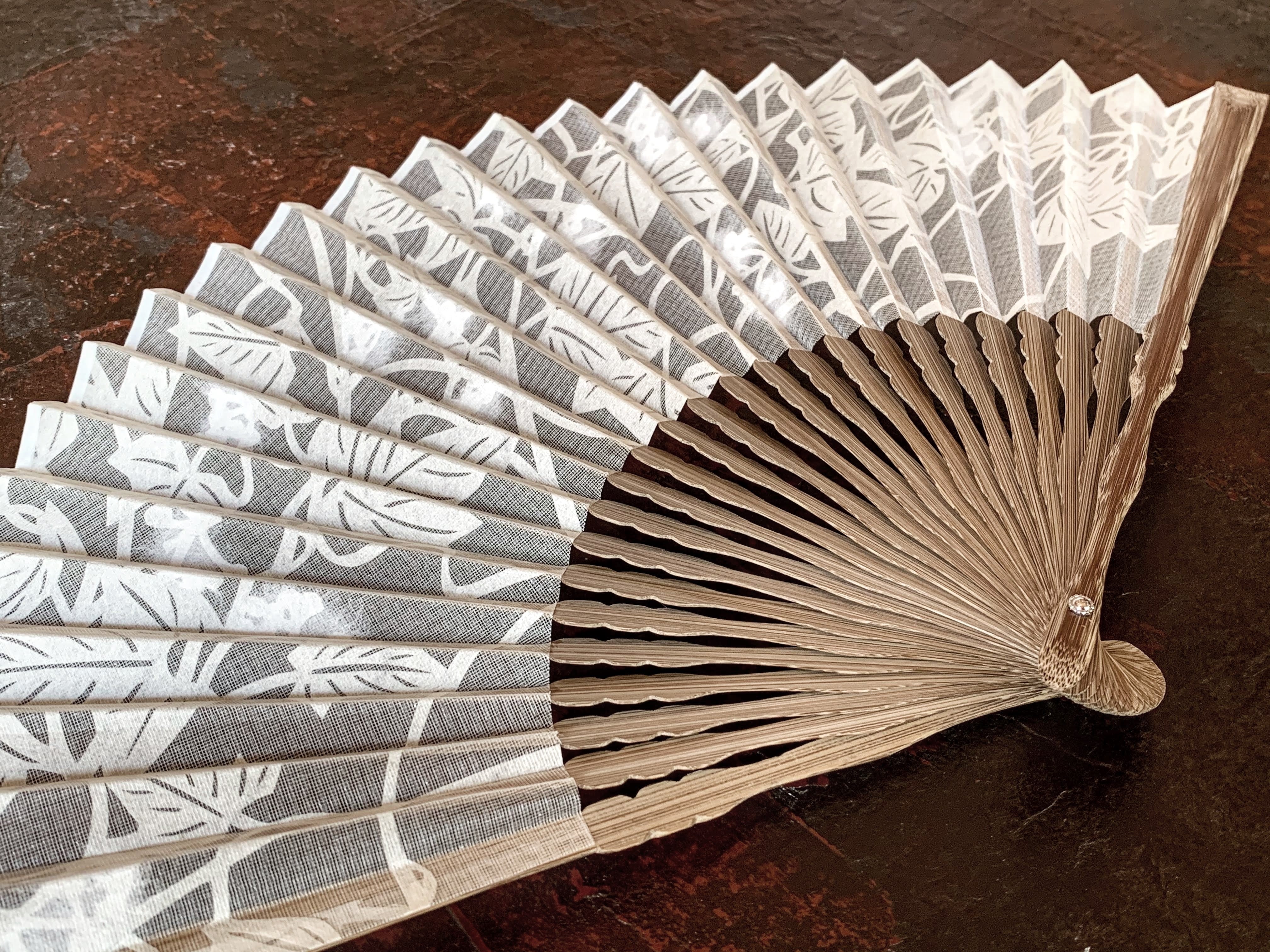 扇子用のたとう紙に手描きの掛け紙を掛けてお届けいたします。