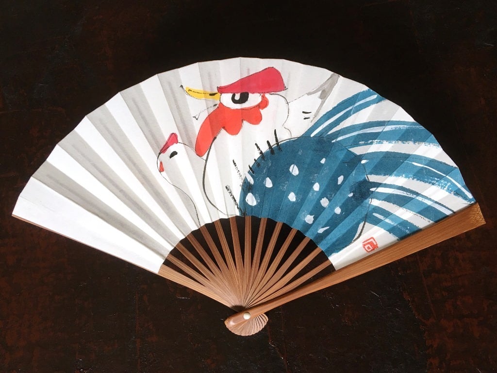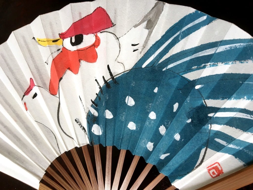 !NEW 2017年 50/15干支茶扇子彩色(鶏二羽)