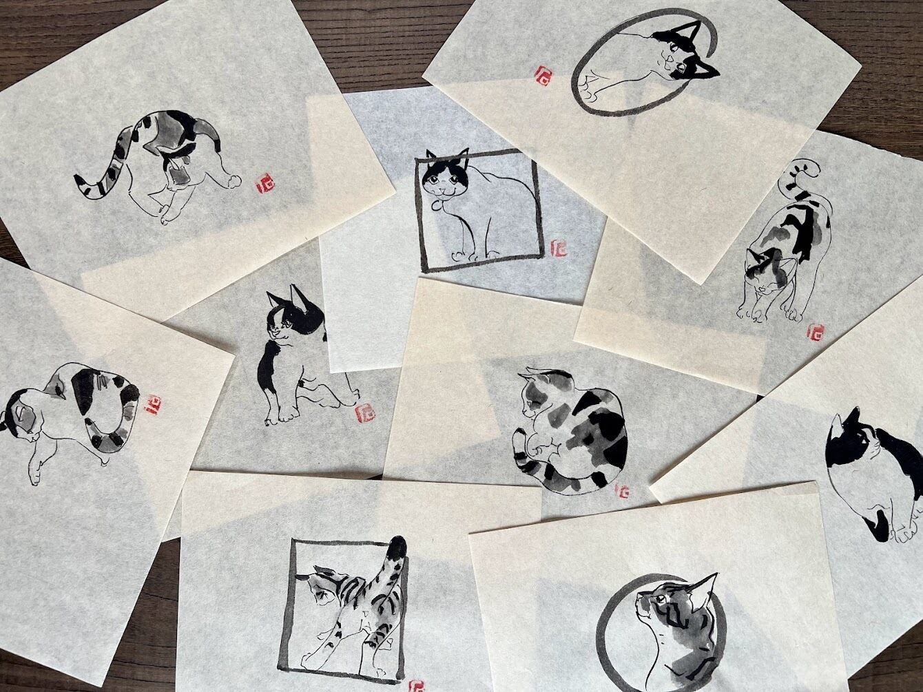パッケージはたとう紙に猫か七福神の手描きの掛け紙でお届けいたします。